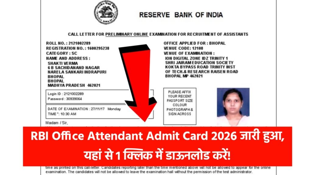 भारत के केंद्रीय बैंक Reserve Bank of India ने RBI Office Attendant Recruitment 2026 के तहत आयोजित होने वाली परीक्षा