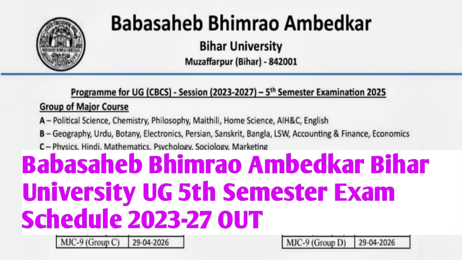 Babasaheb Bhimrao Ambedkar Bihar University UG 5th Semester Exam Schedule 2023-27 Overview