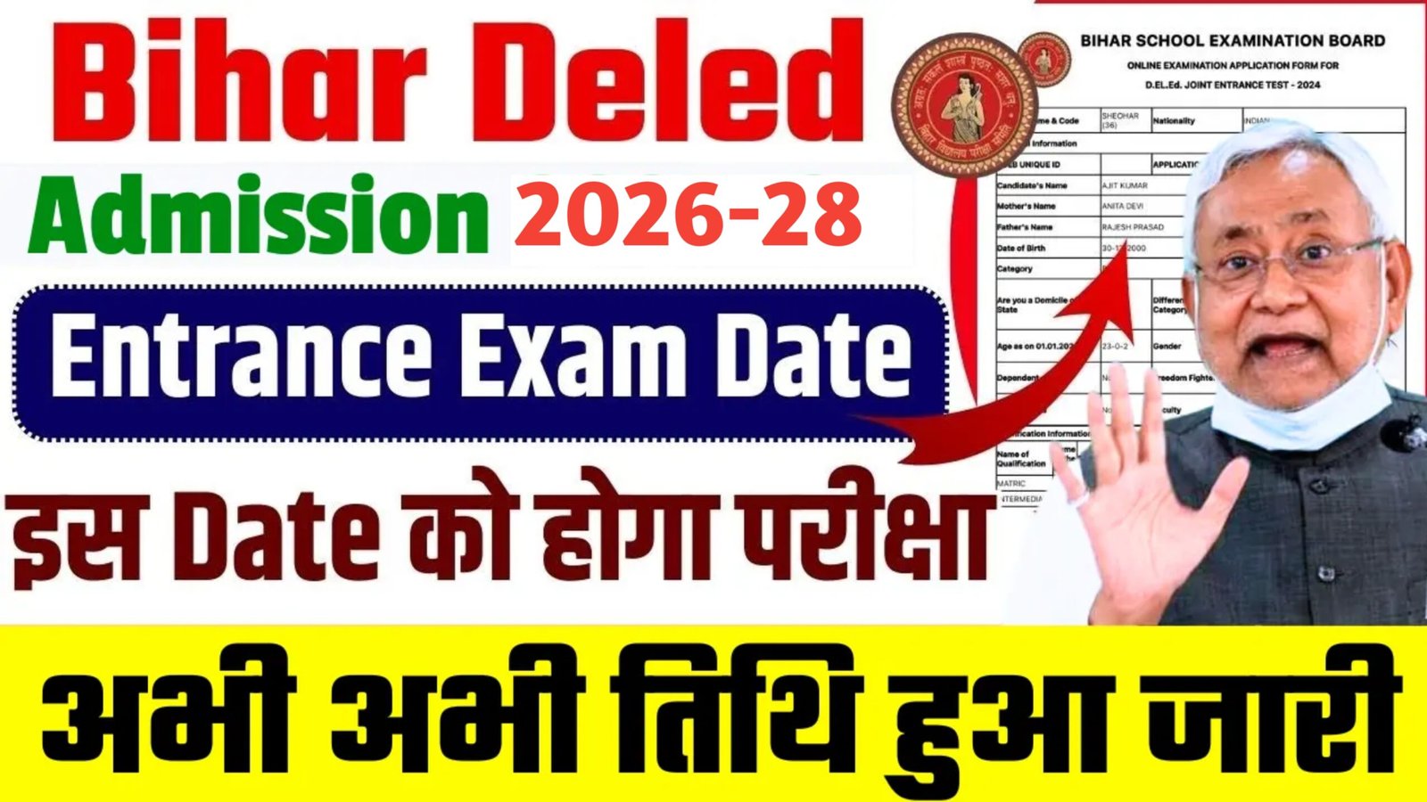 Bihar D.El.Ed Entrance Exam Date 2026