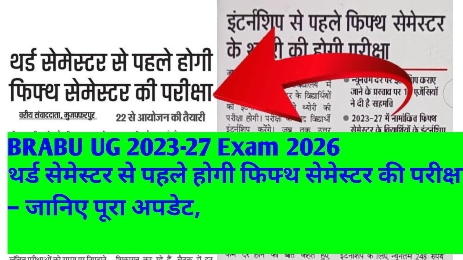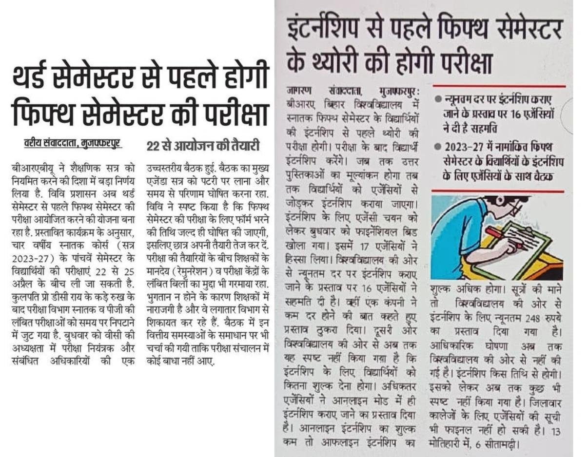 BRABU UG 2023-27 Exam 2026: नमस्कार दोस्तों स्वागत है आप सभी को एक और नए आर्टिकल में बाबासाहेब भीम राव अम्बेडकर बिहार विश्वविद्यालय मुजफ्फरपुर ने स्नातक सत्र 2023-27 के 6वे सेमेस्टर की परीक्षा एवं 2024-28 के 3rd सेमेस्टर की परीक्षा दोनों में अब यूनिवर्सिटी द्वारा 6वे सेमेस्टर के पहले परिक्षा को आयोजित किया जाएगा हाल ही में सामने आई एक महत्वपूर्ण खबर के अनुसार, विश्वविद्यालय प्रशासन ने एक बड़ा शैक्षणिक बदलाव करने का फैसला लिया है। इस नए निर्णय के तहत अब थर्ड सेमेस्टर से पहले फिफ्थ सेमेस्टर की परीक्षा आयोजित की जाएगी। यह बदलाव खासतौर पर उन छात्रों के लिए बेहद महत्वपूर्ण है जो स्नातक (UG) के 2023–27 सत्र में पढ़ाई कर रहे हैं।