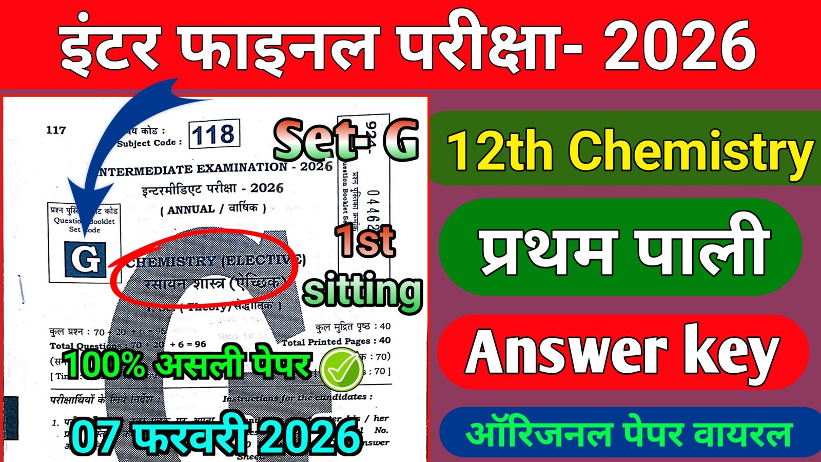 Bihar Board 7 February Class 12th Chemistry Exam 2026 ~ Overview