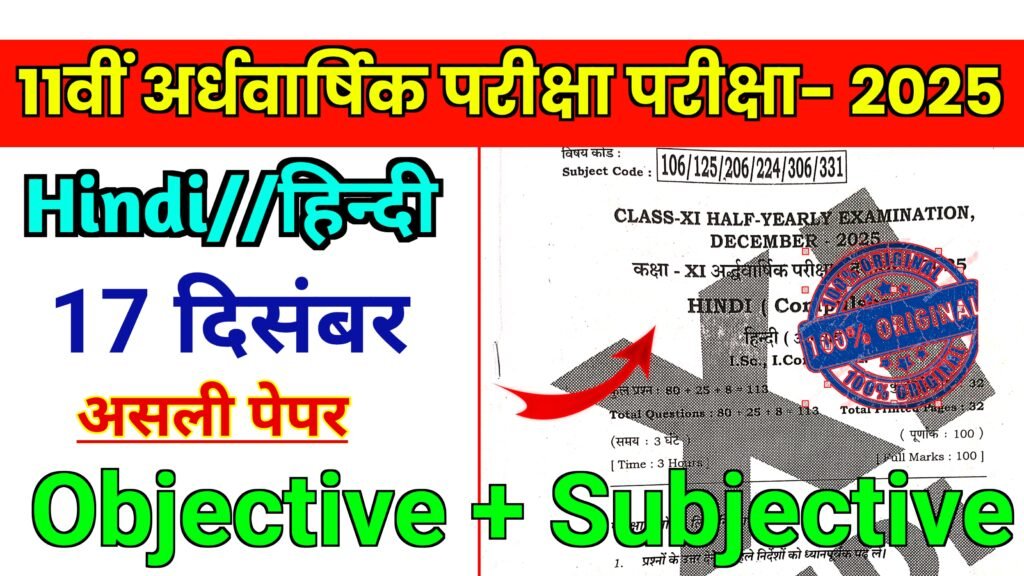 Bihar Board 17 December 11th Hindi Half Yearly Exam 2025; यहाँ से 100% Answer देखें जय हिंद साथियों आज हम