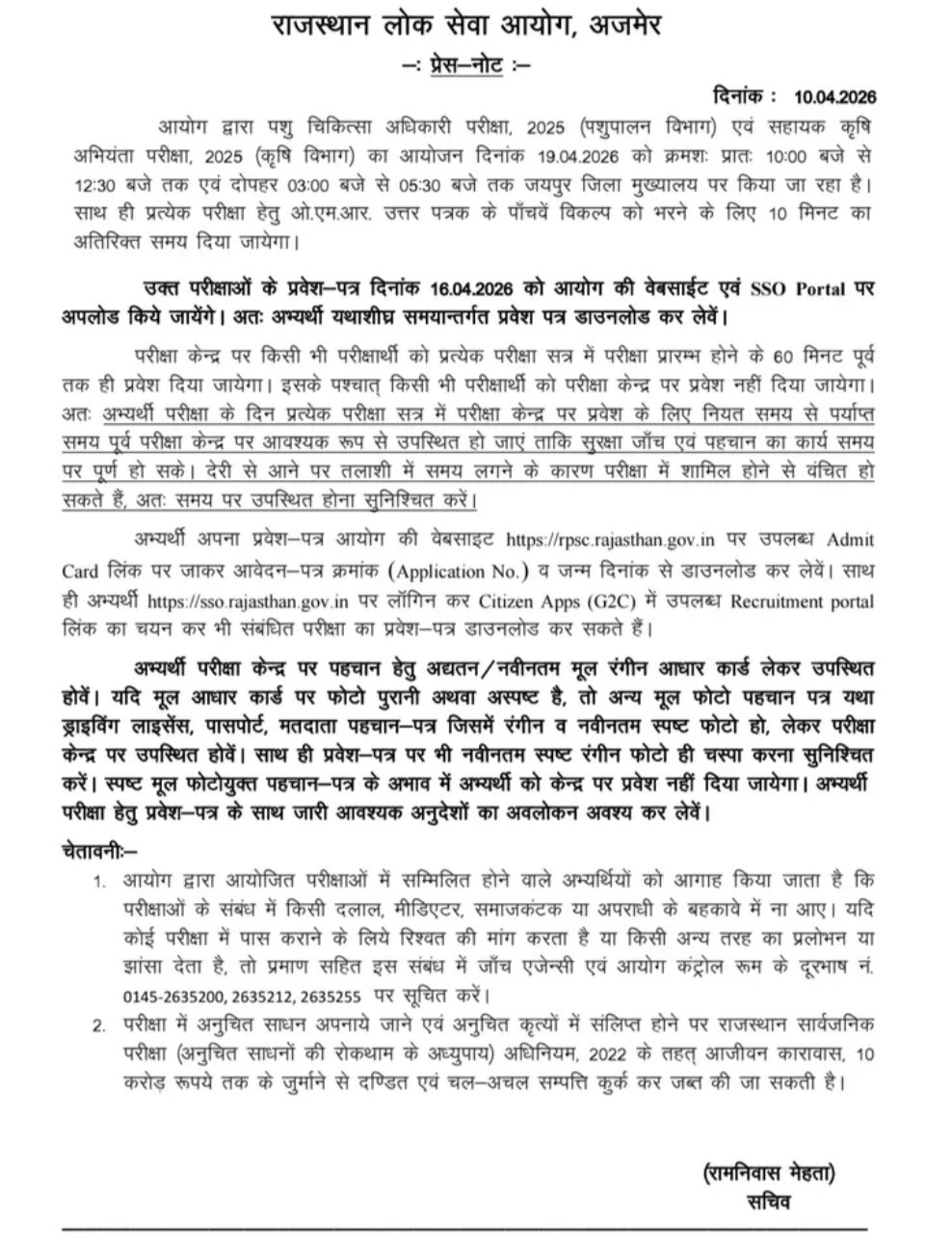 अगर किसी भी जानकारी में गलती हो, तो तुरंत RPSC से संपर्क करें।