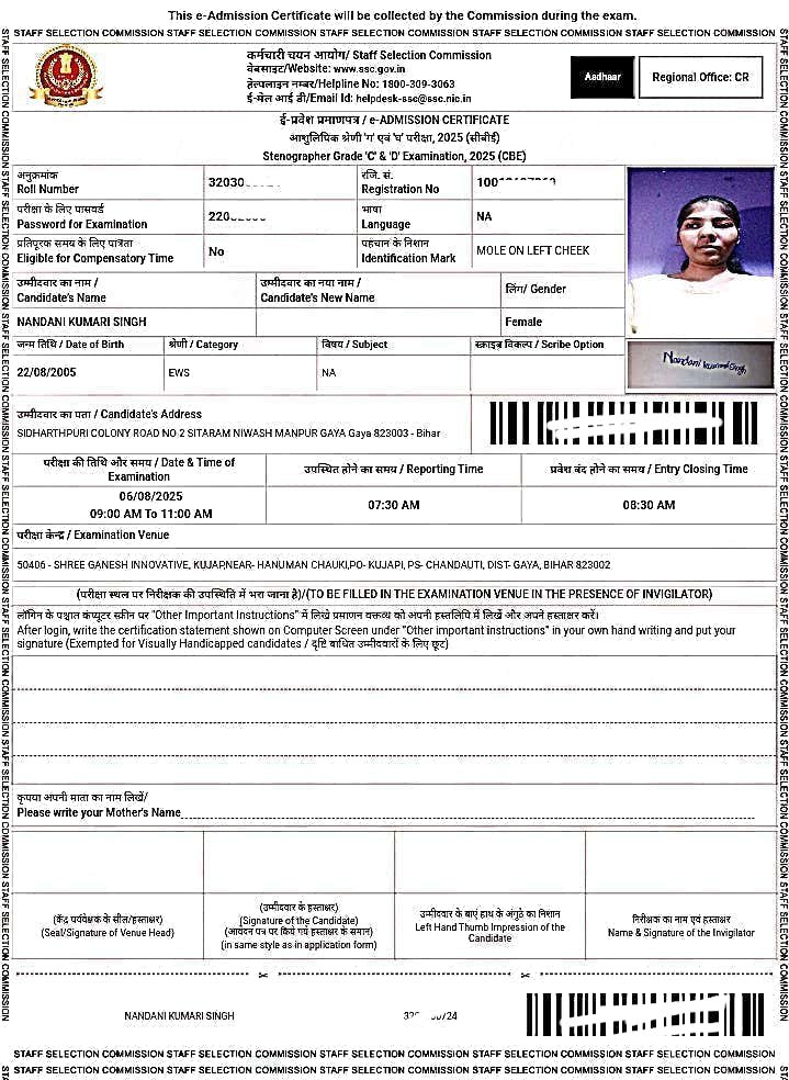 SSC Stenographer Admit Card 2025 Out: Download Link, Exam Date & City Details @ssc.gov.in