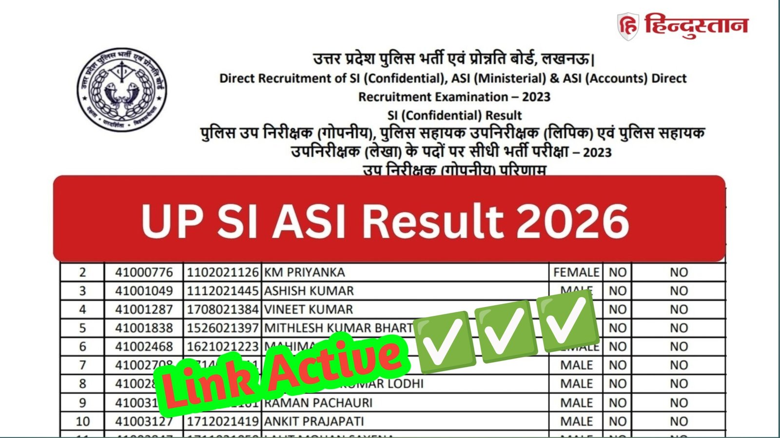 UP Police ASI / SI भर्ती 2023 का फाइनल रिजल्ट जारी होने के साथ ही उन लाखों उम्मीदवारों का इंतजार खत्म हो गया है जिन्होंने इस भर्ती परीक्षा में भाग लिया था।